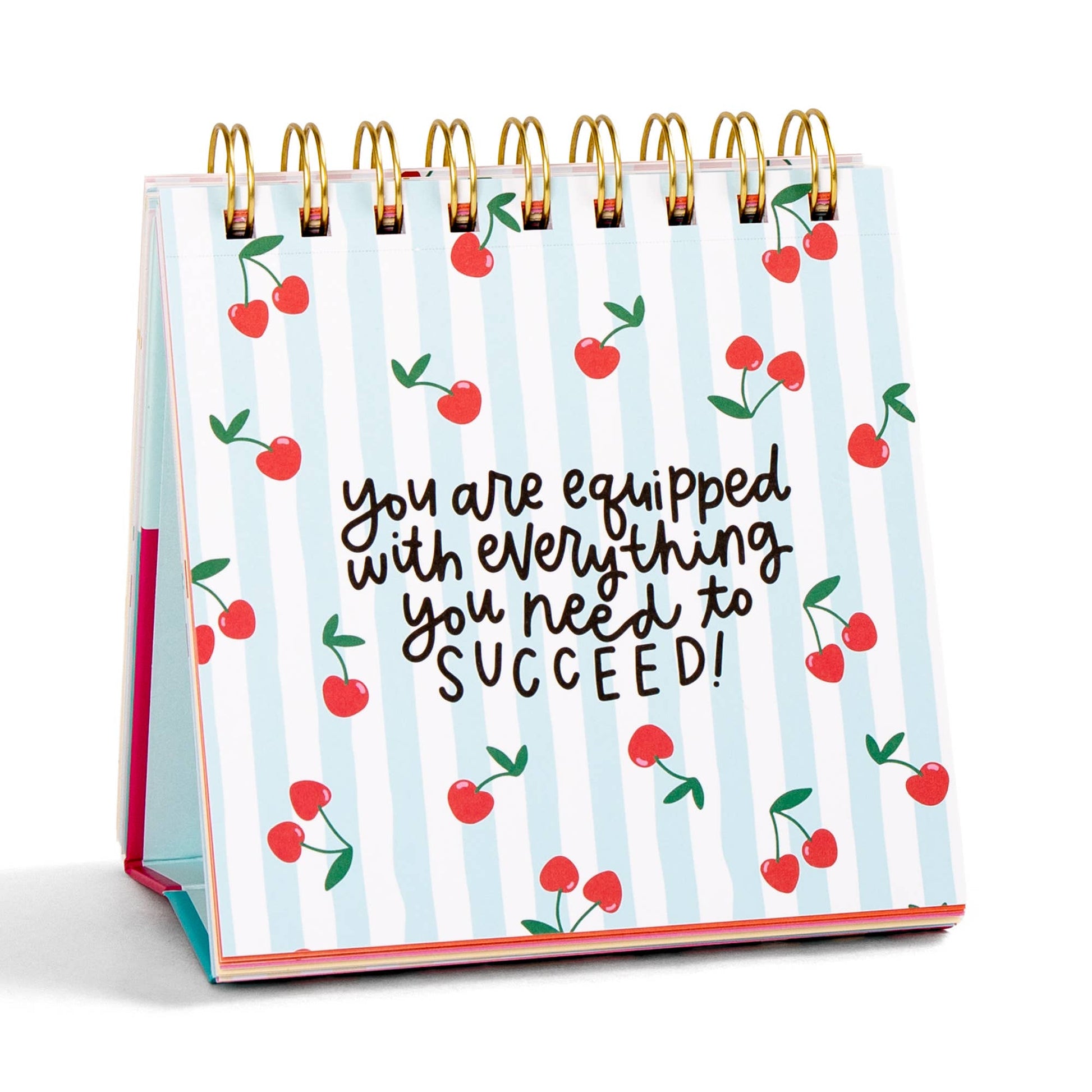 Stay inspired all year with the 52 Weeks of Affirmations Desk Flip Calendar! Every week reveals a fresh, uplifting message to boost your mood and spark self-love. With its shiny gold-foiled cover, easy-to-flip spiral binding, and handy perforated pages, this 5×5.5" calendar stands proudly on any desk or nightstand. It’s the perfect cheerful companion for students, teachers, coworkers, or anyone needing a little daily encouragement wrapped in style and playfulness. Let each week’s affirmation brighten your day and keep positivity flowing!