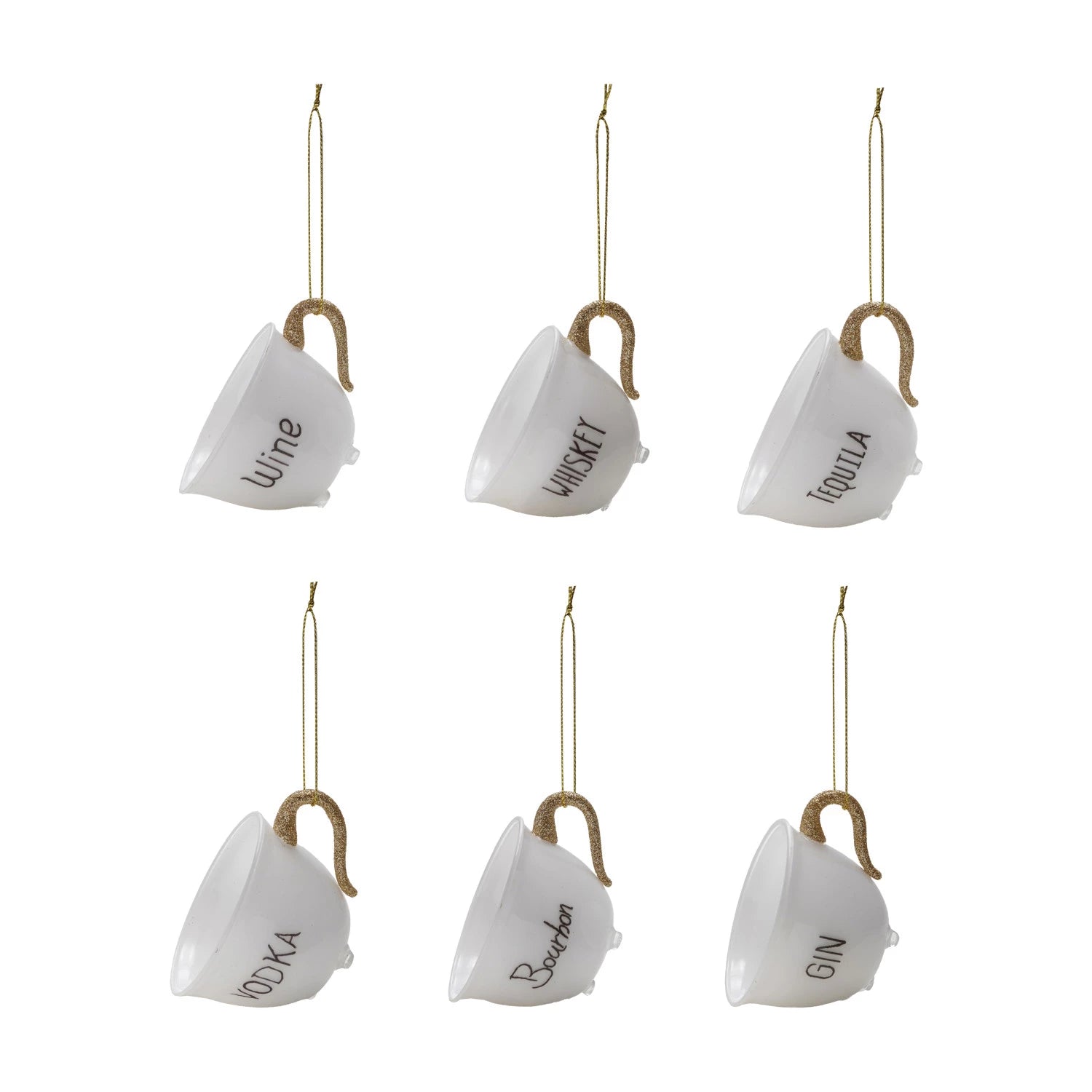 Elevate your holiday décor with our Glass Teacup Ornament collection. Each delicate glass ornament features your choice of spirit—wine, whiskey, tequila, vodka, bourbon, or gin—elegantly displayed in white. Perfect for the discerning host who appreciates both festive charm and sophisticated entertaining, these ornaments add a refined touch to seasonal gatherings and gift exchanges.