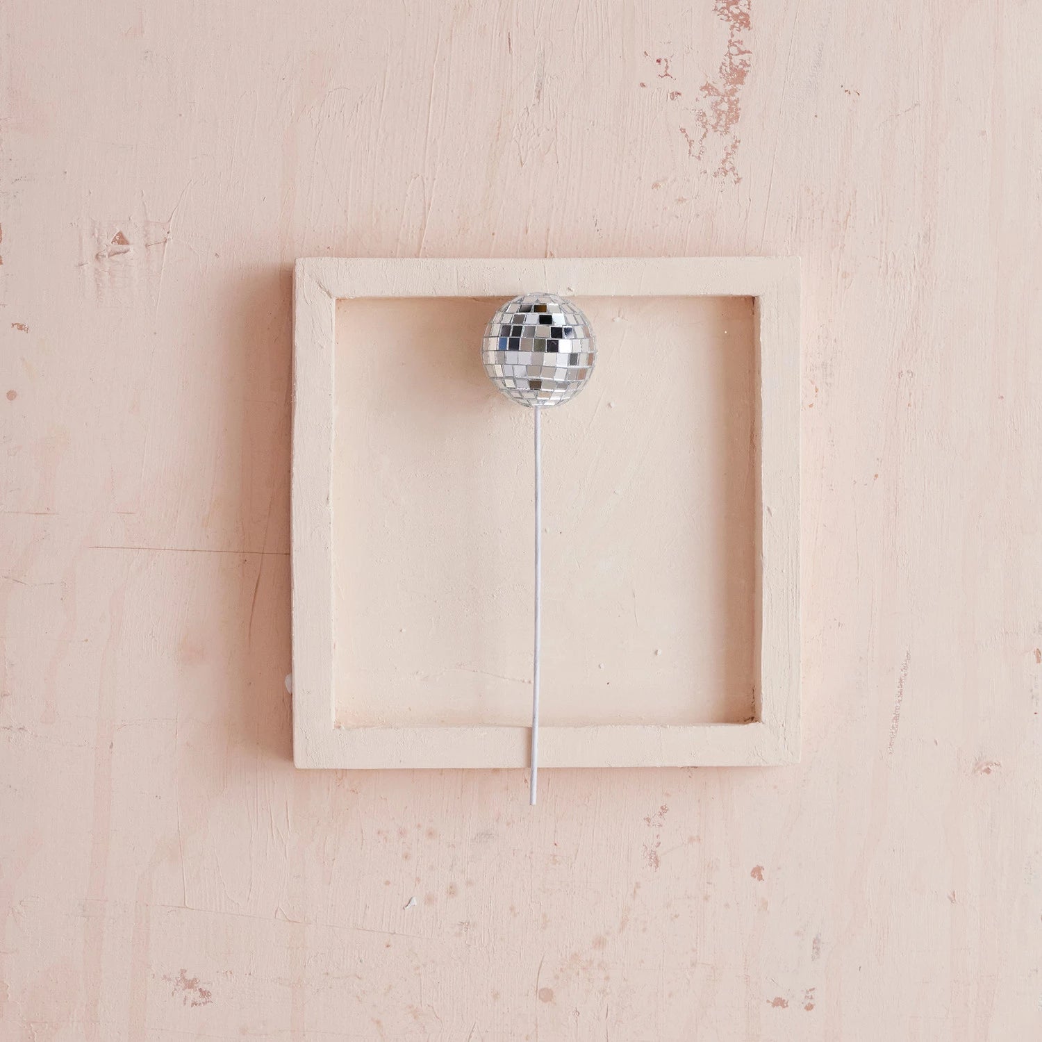 Elevate your botanical displays with our Disco Ball Plant Pick, a sophisticated accent that adds a touch of glamour to any arrangement. This exquisite silver-finished piece features a captivating mosaic of foam and mirrored glass that catches and reflects light, transforming ordinary plants into extraordinary focal points. Perfect as a thoughtful gift for the discerning plant enthusiast.