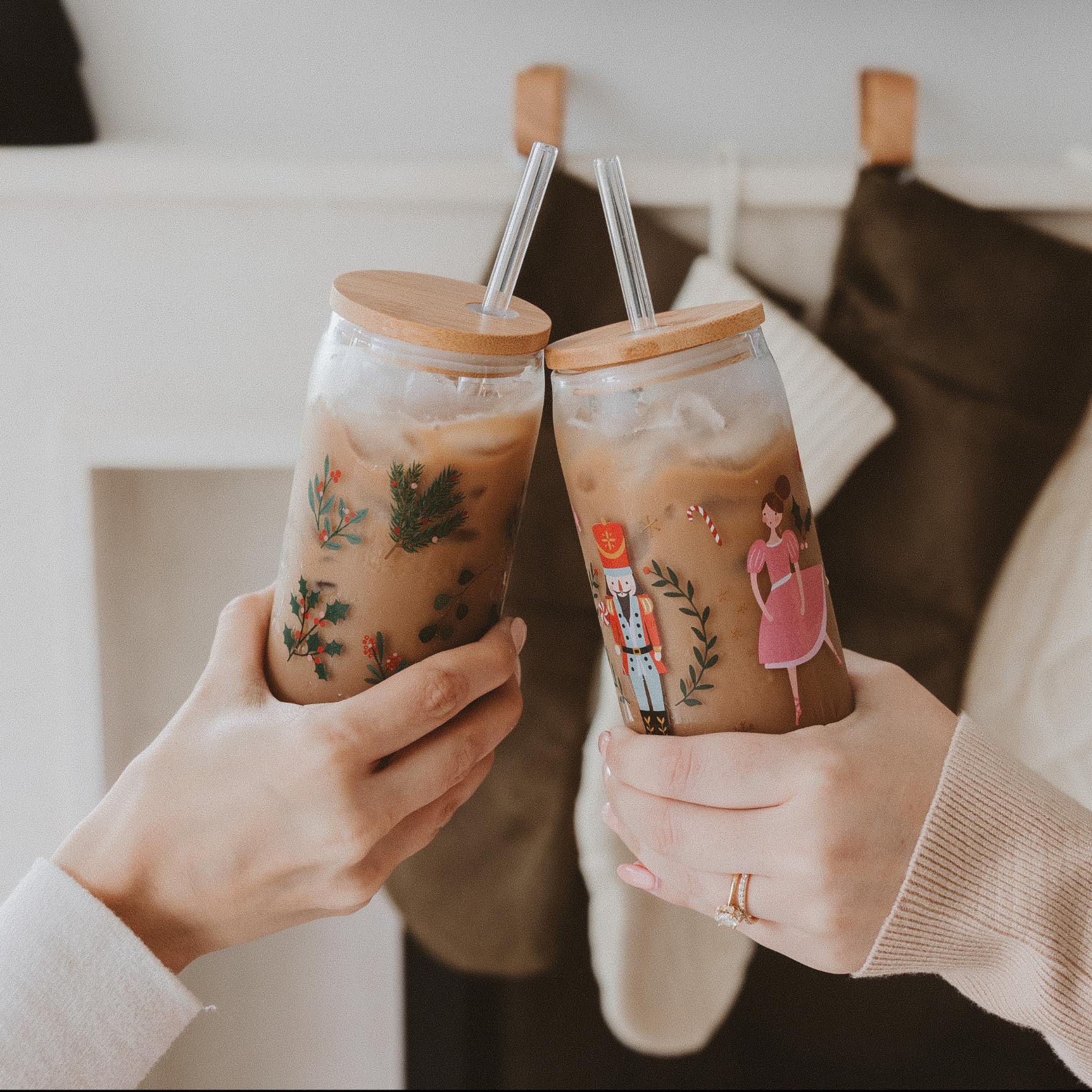 Elevate your holiday sipping experience with our Winter Holiday Glass Tumblers. Crafted with a delicate greenery decal design, this 17oz glass can is perfect for your favorite festive beverages. The bamboo lid and glass straw add a touch of luxury, while the convenient size makes it a perfect on-the-go companion. Hand wash only. Available in two styles.