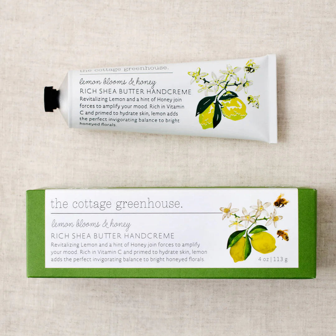 Indulge in our sumptuous Shea Butter Handcreme, thick and irresistibly indulgent. Thanks to a powerful combination of Avocado Oil and Shea Butter, this luxurious handcreme is a nourishing treat for your skin. Infused with natural emollients like Jojoba and Fruit Extracts, it absorbs quickly, leaving even the most demanding dry skin feeling soothed and moisturized. Available in two exquisite scents: Wild Lavender + Violet and Lemon Blossom + Honey.