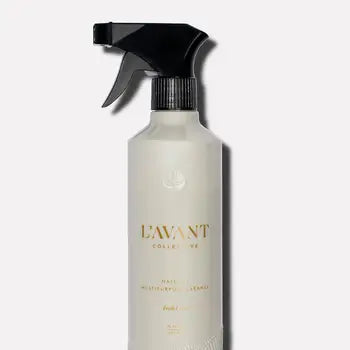 Elevate your cleaning routine with L'AVANT's Multipurpose Surface Cleaner, a sophisticated solution crafted from plant-based ingredients. This versatile formula glides effortlessly across stone, wood, glass, mirrors, and ceramic surfaces, dissolving dirt and grime while enveloping your home in luxurious scents—choose from lush bergamot, fresh linen, or warm ambre santal. Housed in a sleek recycled plastic bottle designed for endless refills, this American-made cleaner combines environmental responsibility with refined elegance, transforming everyday cleaning into an indulgent sensory experience.