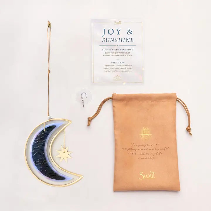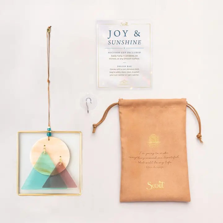 Inspired by Elsie de Wolfe's philosophy of creating beauty, these stained glass light catchers transform ordinary sunlight into captivating displays of color and radiance. Each piece features hand-cut stained glass elegantly framed in gold-plated brass, adorned with carefully selected glass and metal beads on natural cord for added dimension. Available in three distinctive designs, these luminous accents serve as both functional décor and conversation starters. Presented in a polished gift bag with suction cup included, they make a thoughtful present for anyone who appreciates the intersection of artistry and light.