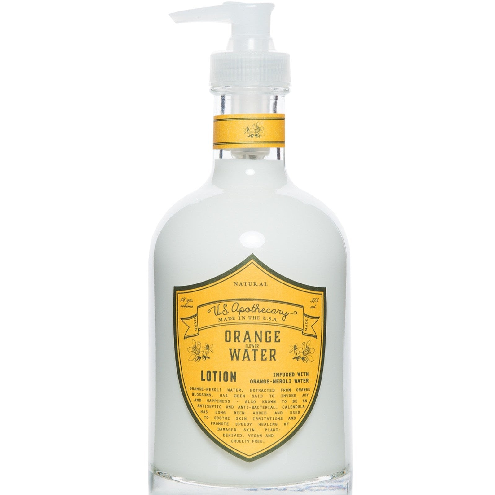 Indulge in the luxurious U.S. Apothecary Lotion, enriched with natural plant extracts and finest ingredients. The moisturizing formula creates a protective barrier to retain moisture and soothe irritated skin, while leaving behind a subtle, delightful scent. Treat yourself to the perfect blend of nature and luxury. 12 oz glass bottle.